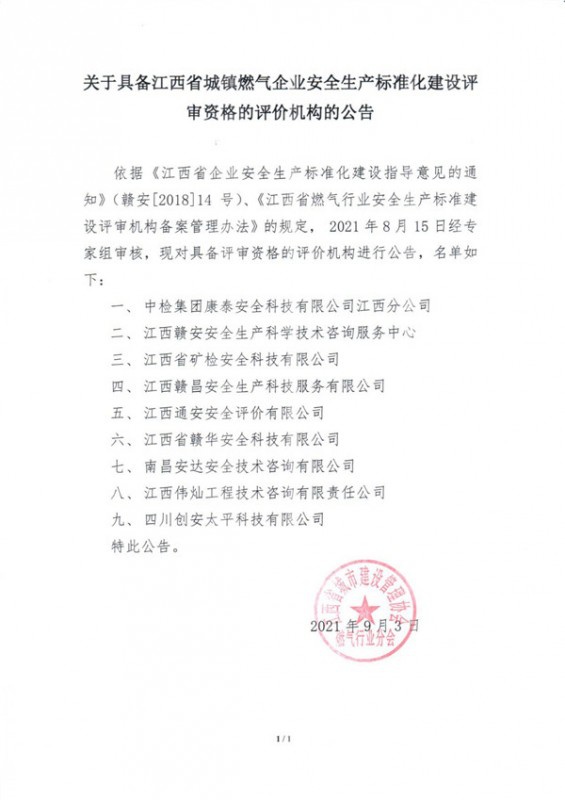 • 安全評價機構資質證書